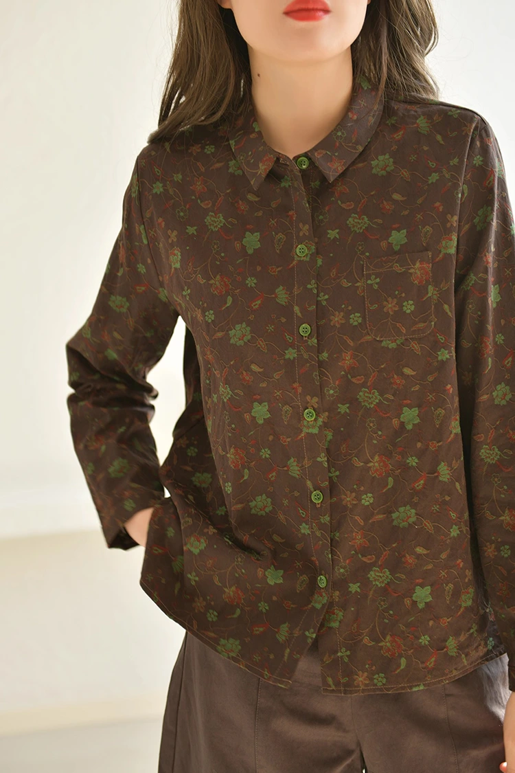 For at tøj skal være behageligt at have på, er den første ting at overveje stoffet. Casual bluse med blomsterprint til kvinder er lavet af 100 % højkvalitets ren bomuldsstof, som er det mest populære stofmateriale på markedet til forårs- og efterårssæsoner. Det opfylder perfekt købernes kernekrav til komfortable og praktiske genstande. Rent bomuldsstof har fremragende åndbarhed og enestående fugtabsorption. Den får dig til at føle dig kølig og ikke svedig om foråret og efteråret, er skånsom mod huden og har ingen irritation, er velegnet til mennesker af alle hudtyper, og selv efter lang tids brug er der ingen ubehag. Det kan forbedre slutforbrugernes bæreoplevelse markant. Samtidig har rent bomuldsstof stor sejhed, er slidstærkt og vaskbart. Efter daglig vask smider den ikke fibre, deformeres ikke og falmer ikke. De trykte mønstre kan forblive klare og komplette i lang tid, og der er ikke behov for kompleks pleje. Dette reducerer eftersalgsomkostningerne for købere betydeligt. Stoffets tykkelse er lige tilpas, hverken for tynd eller for tyk, velegnet til enkelt slid, lagdelt slid og andre forskellige påklædningsstile. Det kan imødekomme daglige casual scenarier og også passe til lette pendlingsbehov, hvilket yderligere udvider salgsscenarier for slutforbrugere.