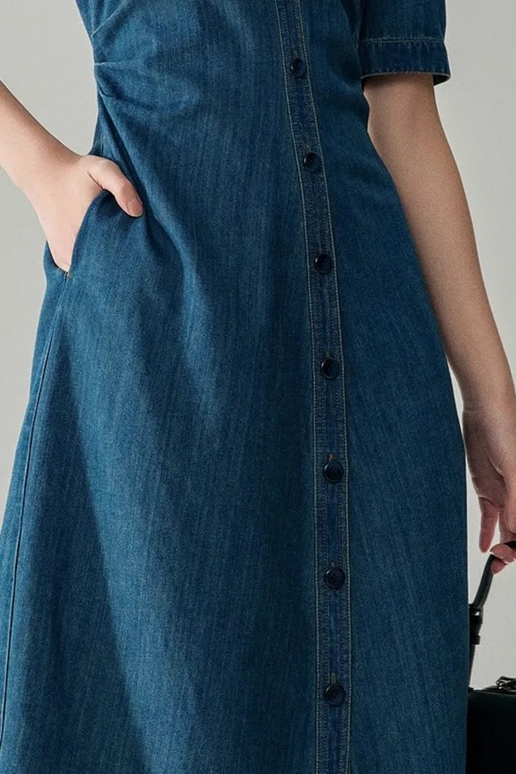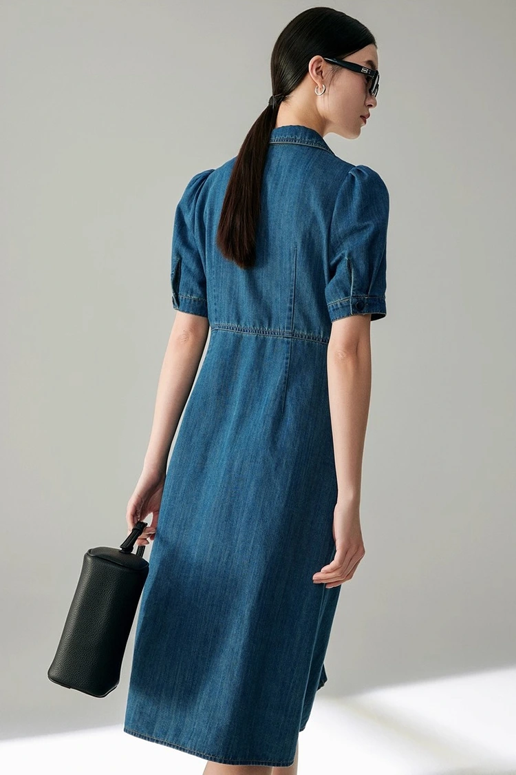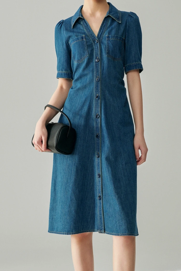 For at imødekomme de kernekrav, der stilles til engroskøb, tager Dame Jeans Cotton Classy Dress højde for tilpasningsevnen til forskellige kropsformer i sit design. Det er særligt venligt over for pæreformede figurer, som kan udvide målgruppen for salg betydeligt og øge købsafkastet. Den usynlige talje på bagsiden af taljen er dette produkts kernedesign. Det kræver ikke en hård taljeopstramning, men kan genialt omridse taljen, undgå omfanget af den lige silhuet, fremhæve kroppens kurver og samtidig sikre komfort under brug. Nederdelkanten antager en A-formet silhuet, der naturligt falder fra taljen til hofterne, som perfekt kan dække overskydende fedt på hofter og ben, minimere manglerne ved figuren og give en blød og flydende tekstur, når du går. Den er både elegant og storslået og begrænser ikke bevægelsen. De lange ærmer er velegnede til forårs- og efterårssæsoner og kan bæres alene eller som et indvendigt lag, hvilket yderligere øger den praktiske værdi af produktet og opfylder slutforbrugernes forskellige påklædningsbehov.