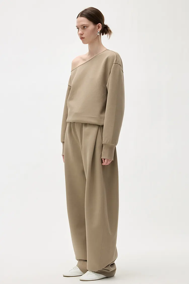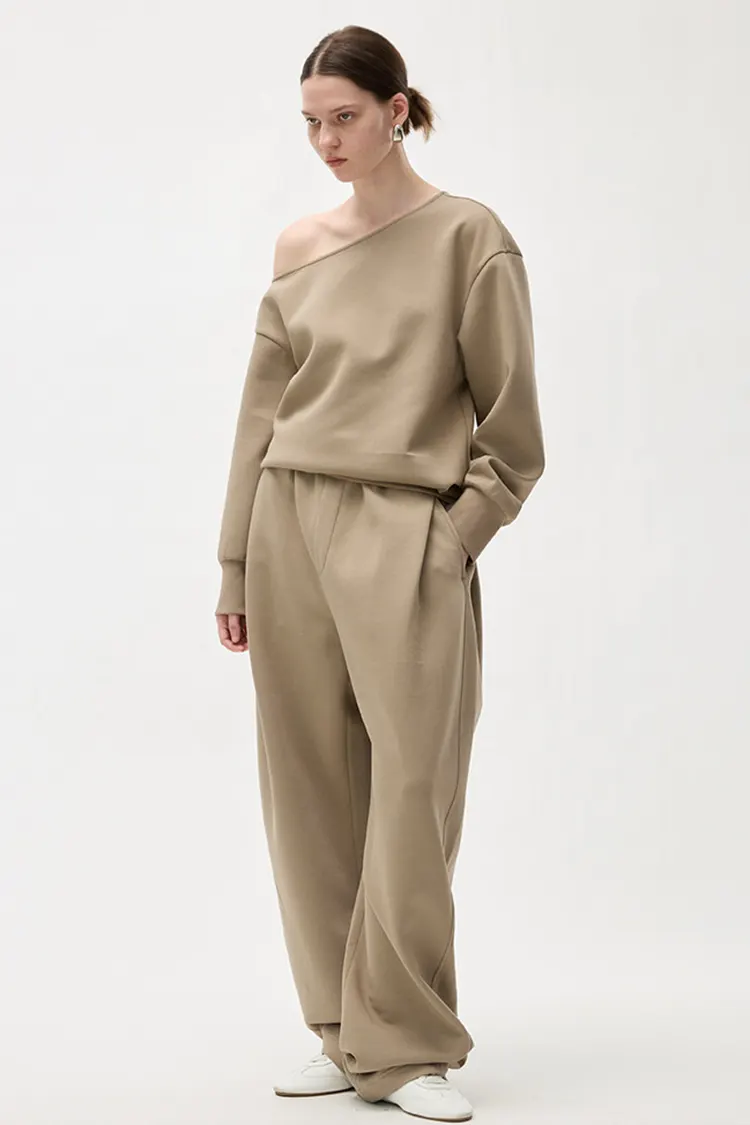 Hele linningen på bukserne er designet med plisseringsteknologi. Pasformen er løs og behagelig, med en elegant stil. Den kan smukt forme forskellige benformer og har en høj grad af fleksibilitet til benlinjerne. Det løse snit med brede ben er ikke begrænset af kropsformen, hvilket visuelt får benene til at se slankere og mere lige ud. Når man går, er draperingen naturlig. Den bevarer den afslappede og frisindede natur af afslappede bukser, samtidig med at den har de pæne og elegante egenskaber som bukser med brede ben. Til forskel fra almindelige joggingbukser har den en stærkere sans for mode og sofistikering. Målgruppen er bred, og salgskonverteringen er stabil.