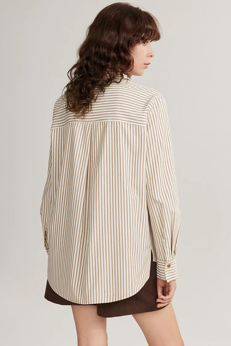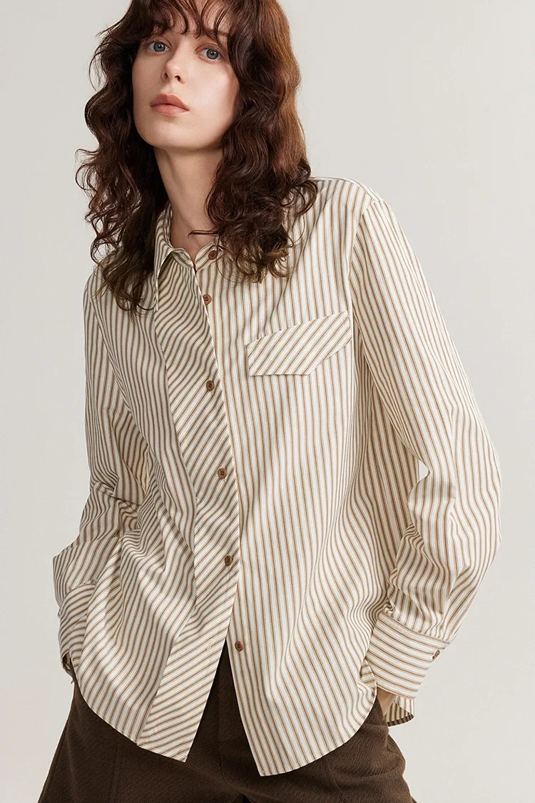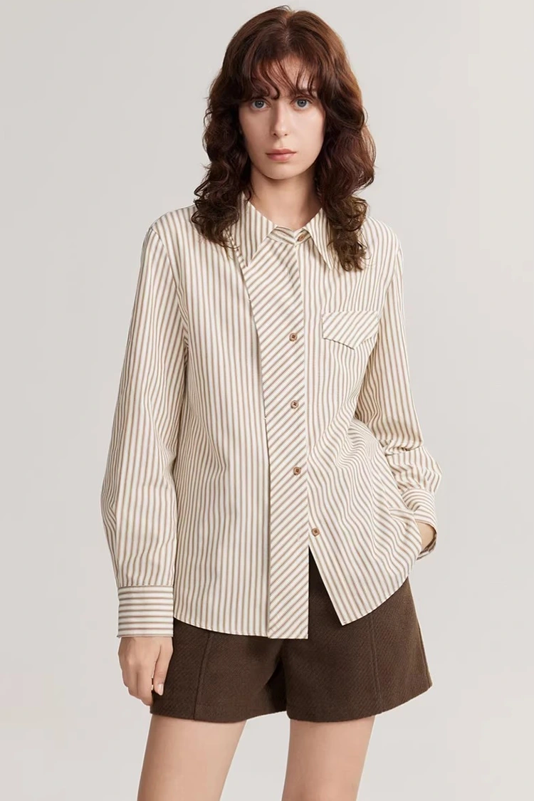 Den løsstribede Casual Bluse til kvinder er lavet af et videnskabeligt afbalanceret stof af 58,7 % polyester og 41,3 % bomuld, som kombinerer komfort og praktisk. Det er det foretrukne materiale til bulkkøb af købere. Polyesterindholdet øger stoffets sejhed og rynkemodstand, hvilket gør det mindre tilbøjeligt til at blive deformeret og pilling. Den er nem at passe og kræver ikke hyppig strygning, hvilket reducerer eftersalgsomkostningerne for købere betydeligt. Bomuldsindholdet sikrer stoffets hudvenlighed og åndbarhed, med en blød og glat tekstur, uden irritation. Den er behagelig at have på forår og efterår, ikke svedig, og velegnet til personer med forskellige hudtyper. Stoffet flosser ikke let, har en fin tekstur, og stribemønsteret er fast printet, der sandsynligvis ikke falder af eller falmer. Det har gennemgået streng kvalitetskontrol og opfylder internationale kvalitetsstandarder. Samtidig er stoftykkelsen moderat, velegnet til overtøj og indertøj i forår og efterår.